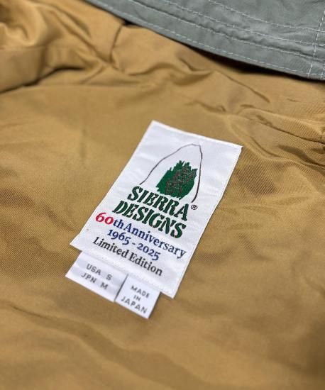SIERRA DESIGNS創立60周年記念の限定オリジナルマウンテンパーカー。内裾には創業当時のレプリカラベルが付いています。